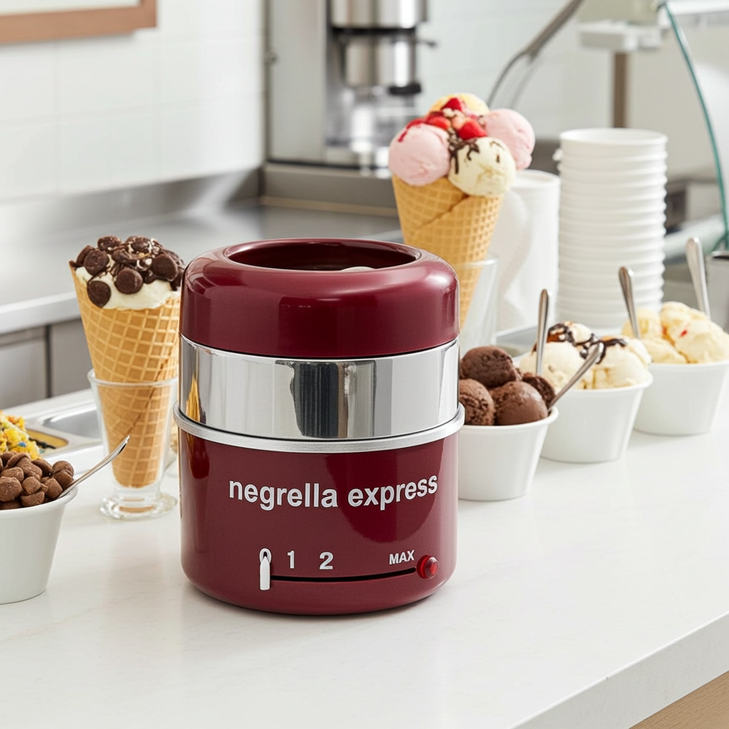 Negrella Express è una temperatrice di cioccolato professionale, indispensabile per realizzare coperture in cioccolato di gelati, semifreddi e non solo.