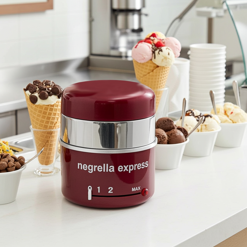 Negrella Express è una temperatrice di cioccolato professionale, indispensabile per realizzare coperture in cioccolato di gelati, semifreddi e non solo.